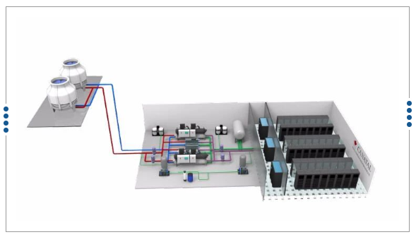 水冷磁悬浮一体化解决方案主机采用佳力图MCW系列水冷磁悬浮离心式冷水机组为数据中心、中央空调工程的集中式空气处理设备或末端装置提供冷冻水。采用磁悬浮与直流变频驱动技术,确保压缩机在各种工况条件下始终处于最优状态,采用磁悬浮轴承系统,运动部件无接触式机械摩擦,减少能量损失:使用集成变频驱动技术的高速两级压缩在低冷凝温度或者热负荷下降情况下,通过调节转速与预先计算喘振曲线从而在额定负荷100%~10%甚至更低的宽广范围优化压缩机能耗。
