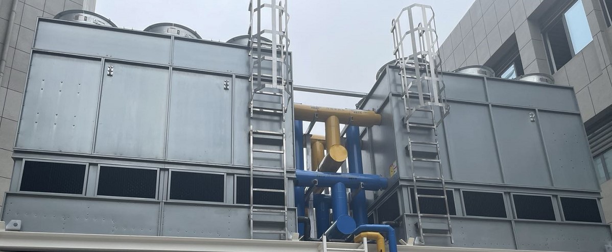 冷却塔采用双模块闭式的方式,单模块均对应单台磁悬浮压缩机,单个模块可以独立工作,并实现冷却塔和冷水机组的联动控制。